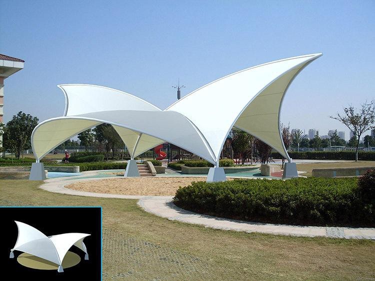 索膜結(jié)構(gòu)也稱為張拉膜結(jié)構(gòu),是膜結(jié)構(gòu)三種常見形式之一,其以膜材、鋼結(jié)構(gòu)支柱、拉索等共同作用,使膜面形成一定的張力從而形成承受外載荷的某種穩(wěn)定的空間結(jié)構(gòu),與骨架式、充氣式結(jié)構(gòu)相比索膜結(jié)構(gòu)是最能體現(xiàn)膜結(jié)構(gòu)精髓的形式,由于其強(qiáng)度決定于受拉構(gòu)件的承載能力而不是結(jié)構(gòu)的穩(wěn)定性,所以能夠充分發(fā)揮鋼索和膜材受拉工作時(shí)強(qiáng)度高、自重輕的特點(diǎn),更加適合于大跨度結(jié)構(gòu)中,其造型也更加的靈活、輕巧、柔美,對(duì)于索膜結(jié)構(gòu)來(lái)說(shuō)不需要多余的支撐體系也不需要多余的裝飾,其結(jié)構(gòu)本身就是一種藝術(shù)造型。所以索膜結(jié)構(gòu)非常適合用在標(biāo)志性建筑上,如體育場(chǎng)館、商場(chǎng)、交通設(shè)施、娛樂設(shè)施、文化景觀設(shè)施等,不僅如此因?yàn)樵煨透袕?qiáng)、制作簡(jiǎn)單、安裝便捷、節(jié)能環(huán)保、安全性好所以索膜結(jié)構(gòu)現(xiàn)在應(yīng)用范圍非常廣泛。