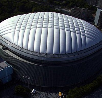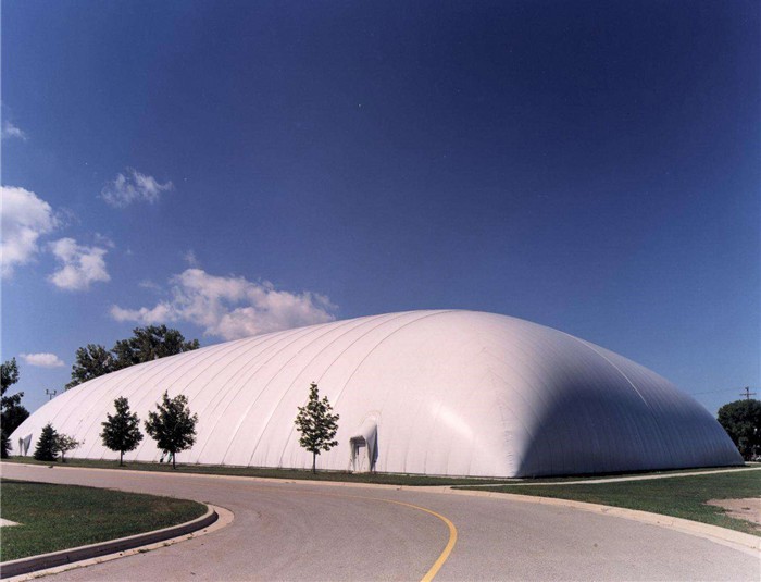 氣膜結(jié)構(gòu)由于只承受張力,可使材料受力性能得到充分發(fā)揮,加之其獨(dú)特的性能特點(diǎn)和優(yōu)勢(shì),當(dāng)前已越來(lái)越廣泛地應(yīng)用于大跨度結(jié)構(gòu)建筑中。它以?xún)?yōu)良的織物為材料,由膜內(nèi)空氣壓力支承膜面,或利用柔性鋼索、剛性支撐結(jié)構(gòu)通過(guò)彎曲內(nèi)面力傳送,將膜面繃緊,從而形成具有一定剛度、張力,能夠覆蓋大跨度空間的膜結(jié)構(gòu)體系。