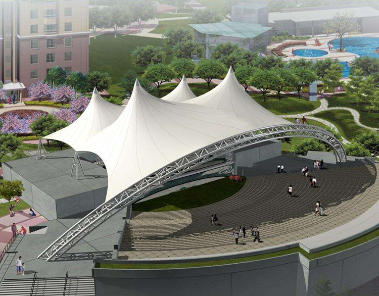 2、膜結(jié)構(gòu)景觀小品在環(huán)境中審美功能是它的屬性,它通過造型、色彩、材質(zhì)、肌理向人們展示其形象特征,同時也包含著一定的文化內(nèi)涵。景觀膜結(jié)構(gòu)的文化性體現(xiàn)在地方性和時代性當(dāng)中,它的創(chuàng)造過程就是對這些文化內(nèi)涵不斷升華、提煉的過程,它的文化特征反映在其形象上,結(jié)合周圍的文化背景和地域特征而呈現(xiàn)出不同的設(shè)計風(fēng)格。